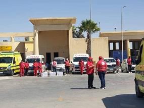 فضلاً عن المتطوعين وموظفي الهلال الأحمر المصري القائمين عند رفح على مدار الساعة لتلقي وفرز ومراجعة وتصنيف وتحديد أولويات الاحتياجات لإرسالها إلى الهلال الأحمر الفلسطيني.