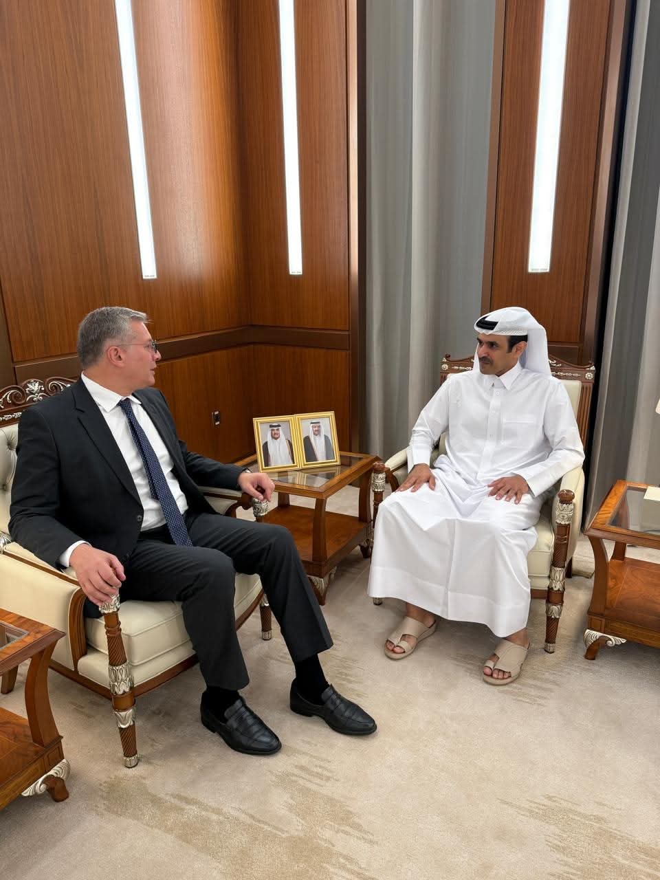 بحث كريم بدوي وزير البترول والثروة المعدنية ونظيره القطري تنفيذ مشروعات مشتركة للغاز الطبيعي وتوقيع عقود طويلة الأجل لتوريد الغاز الطبيعي من الجانب القطري بما يسهم في تأمين إمدادات الغاز الطبيعي لتلبية الاحتياجات المحلية.