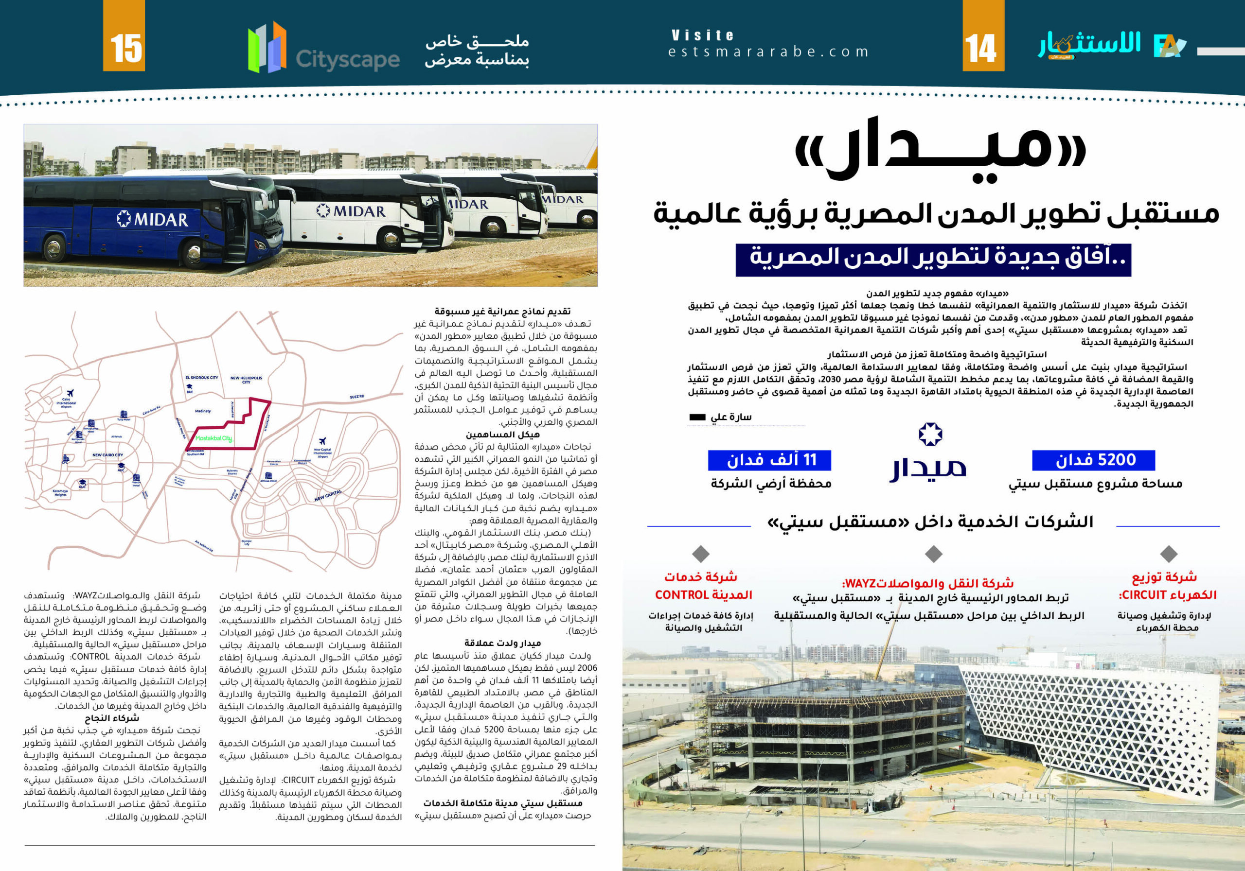 تعد “ميدار” بمشروعها “مستقبل سيتي” إحدى أهم وأكبر شركات التنمية العمرانية المتخصصة في مجال تطوير المدن السكنية والترفيهية الحديثة