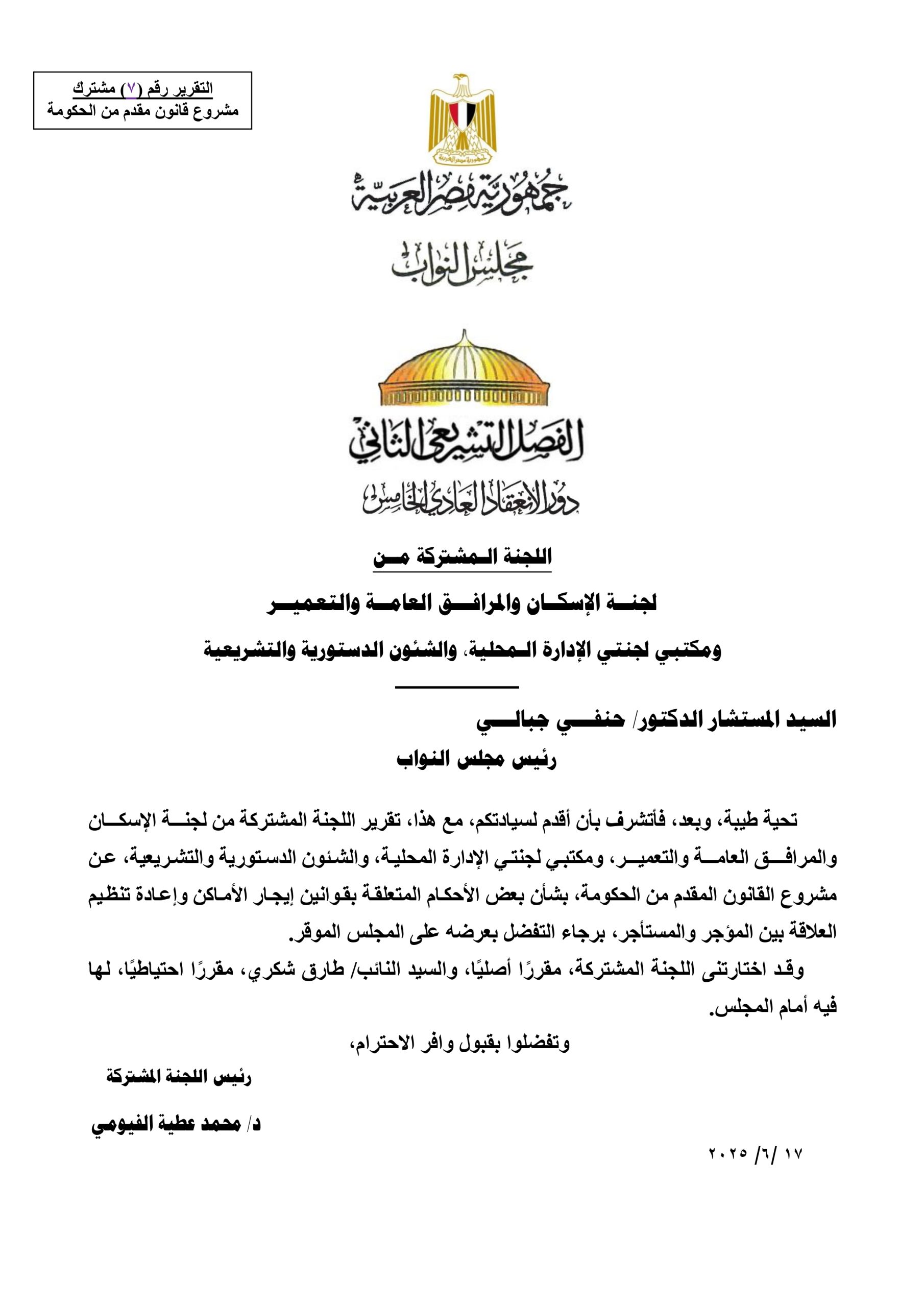 وافق مجلس النواب برئاسة المستشار الدكتور حنفي جبالي، خلال جلسته العامة اليوم، نهائيًا على مشروع قانون مقدم من الحكومة يتعلق ببعض الأحكام الخاصة بقوانين إيجار الأماكن وتنظيم العلاقة بين المؤجر والمستأجر، والمعروف باسم “قانون الإيجار القديم”.