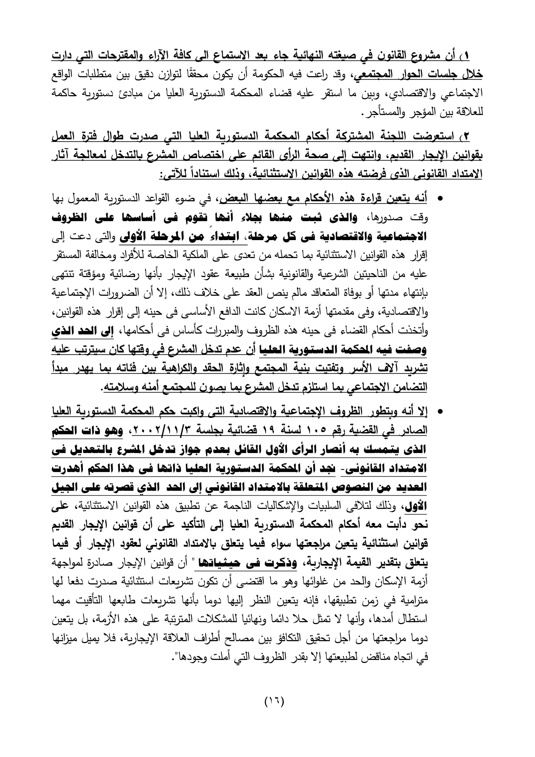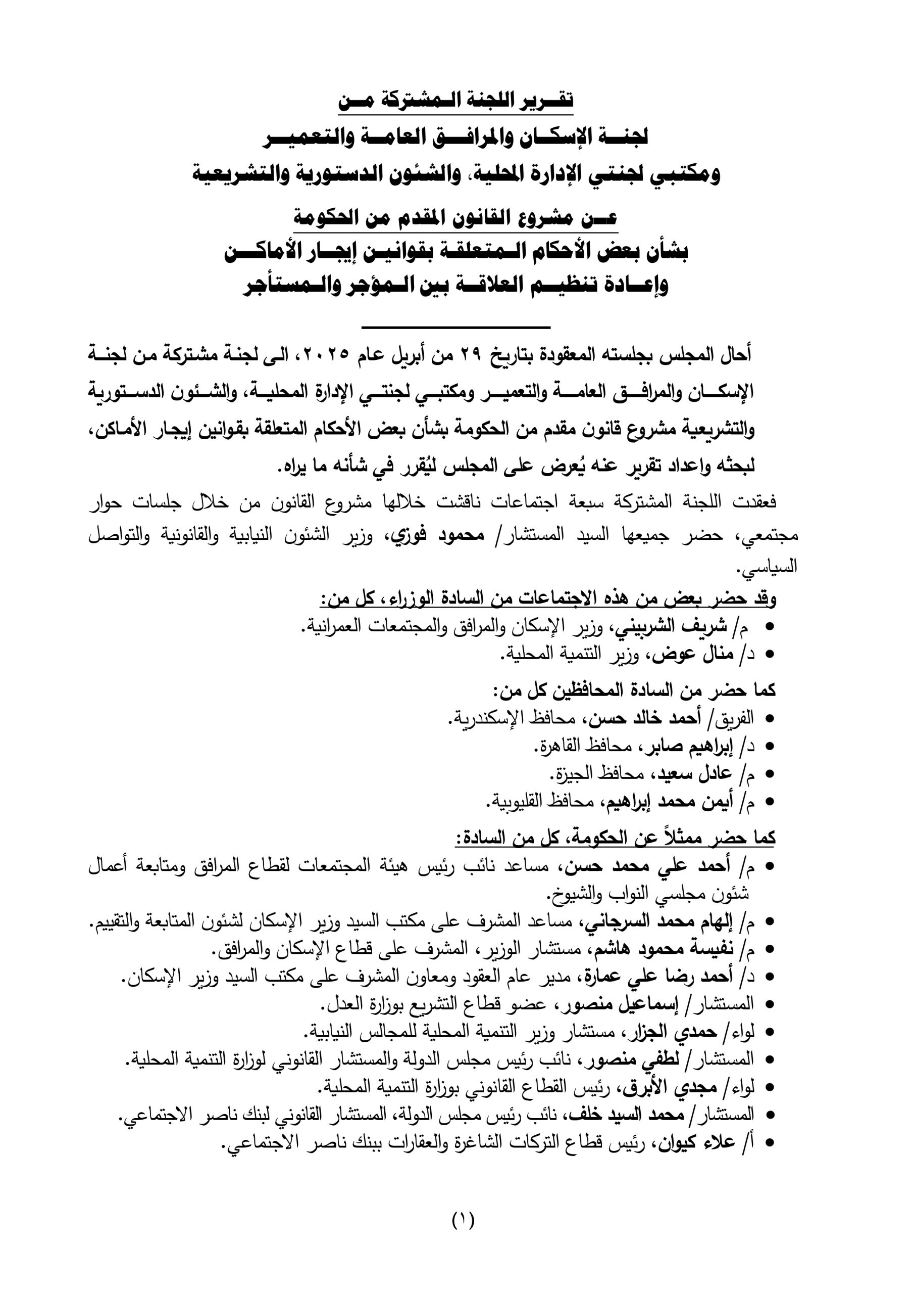 وافق مجلس النواب برئاسة المستشار الدكتور حنفي جبالي، خلال جلسته العامة اليوم، نهائيًا على مشروع قانون مقدم من الحكومة يتعلق ببعض الأحكام الخاصة بقوانين إيجار الأماكن وتنظيم العلاقة بين المؤجر والمستأجر، والمعروف باسم “قانون الإيجار القديم”.