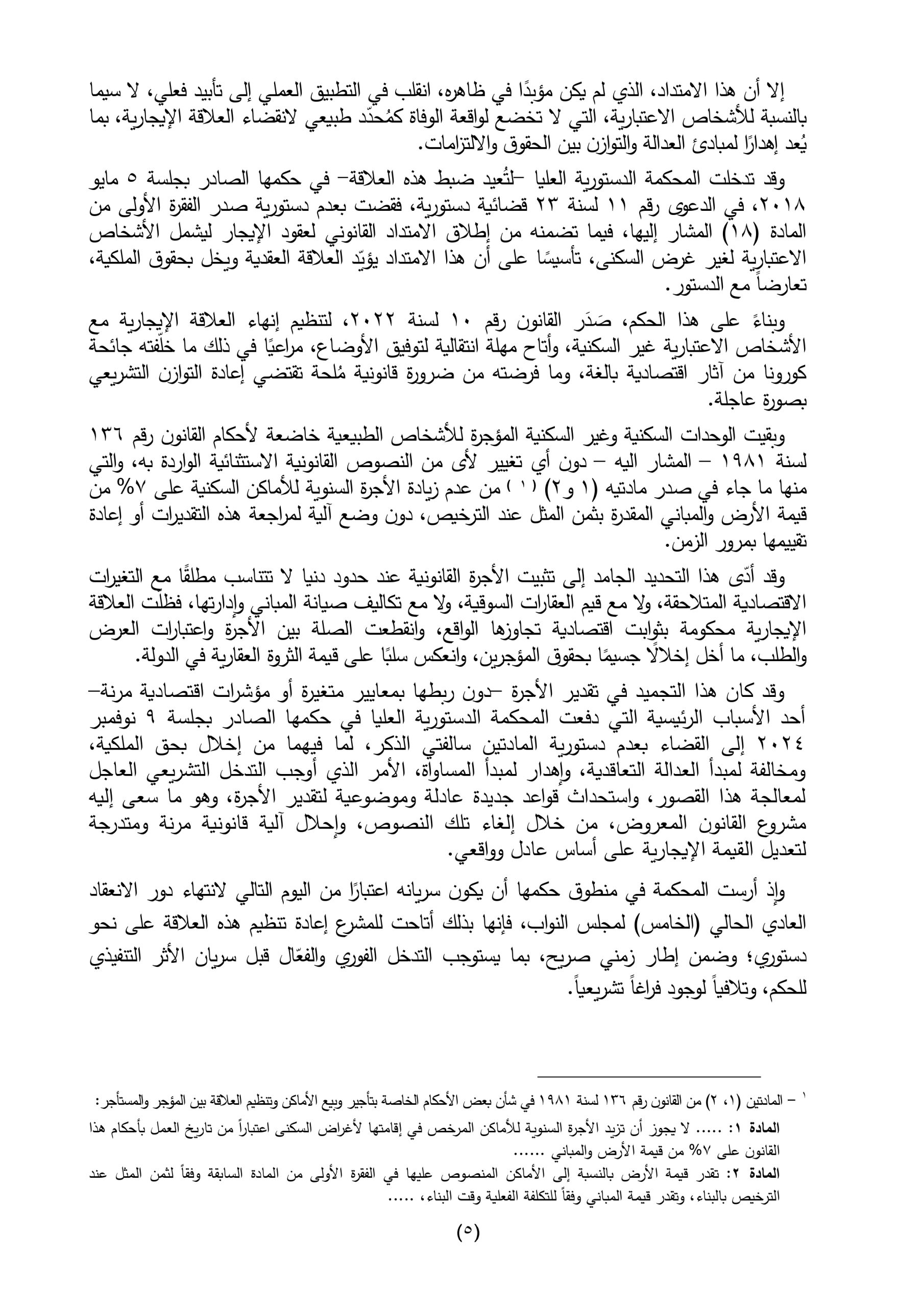 المادة 5: الزيادة على الوحدات المستغلة لغير أغراض السكن