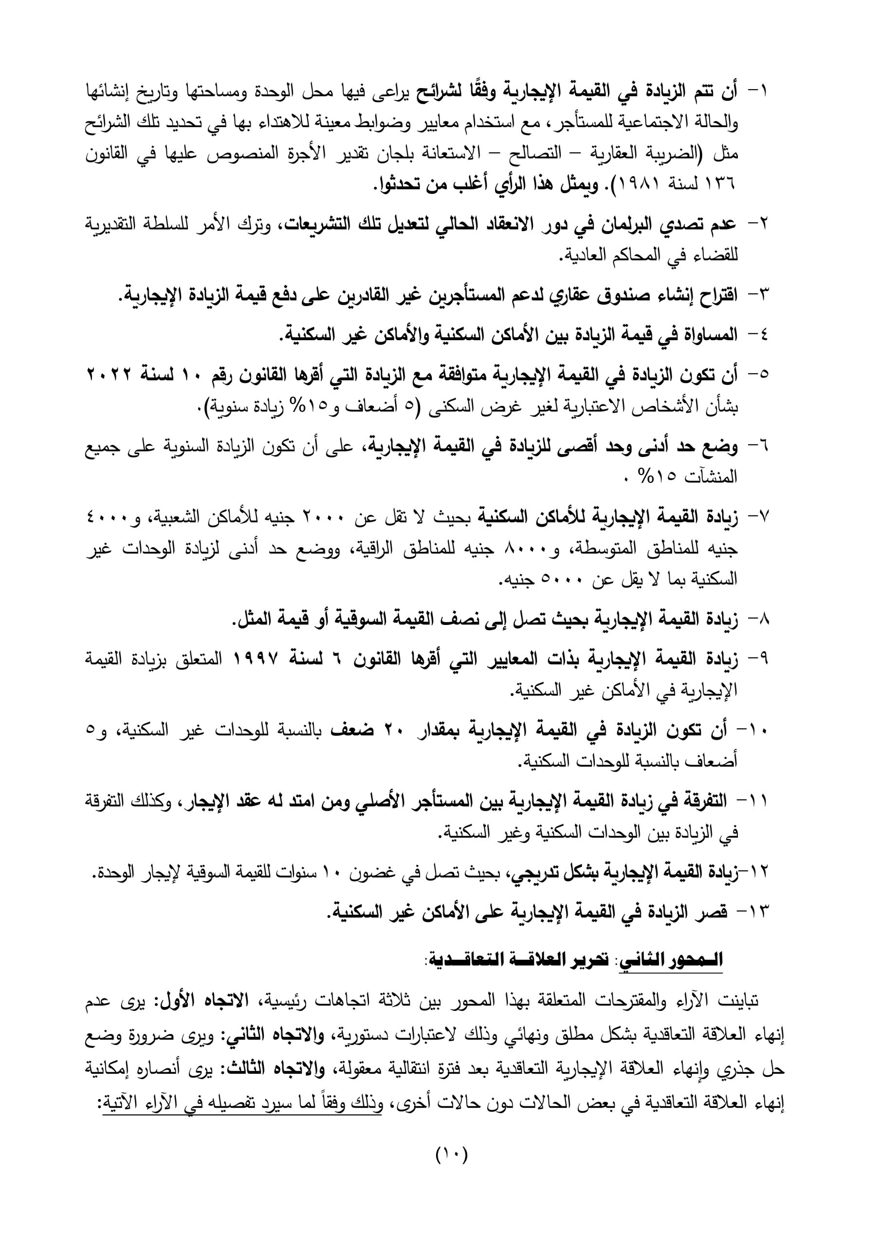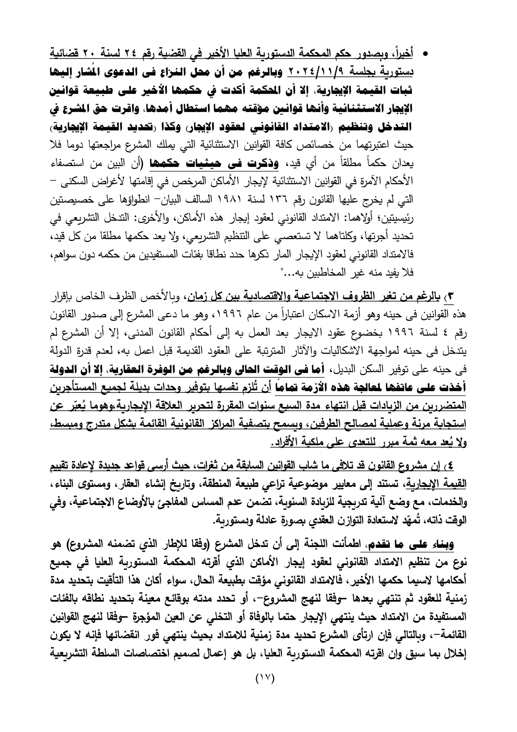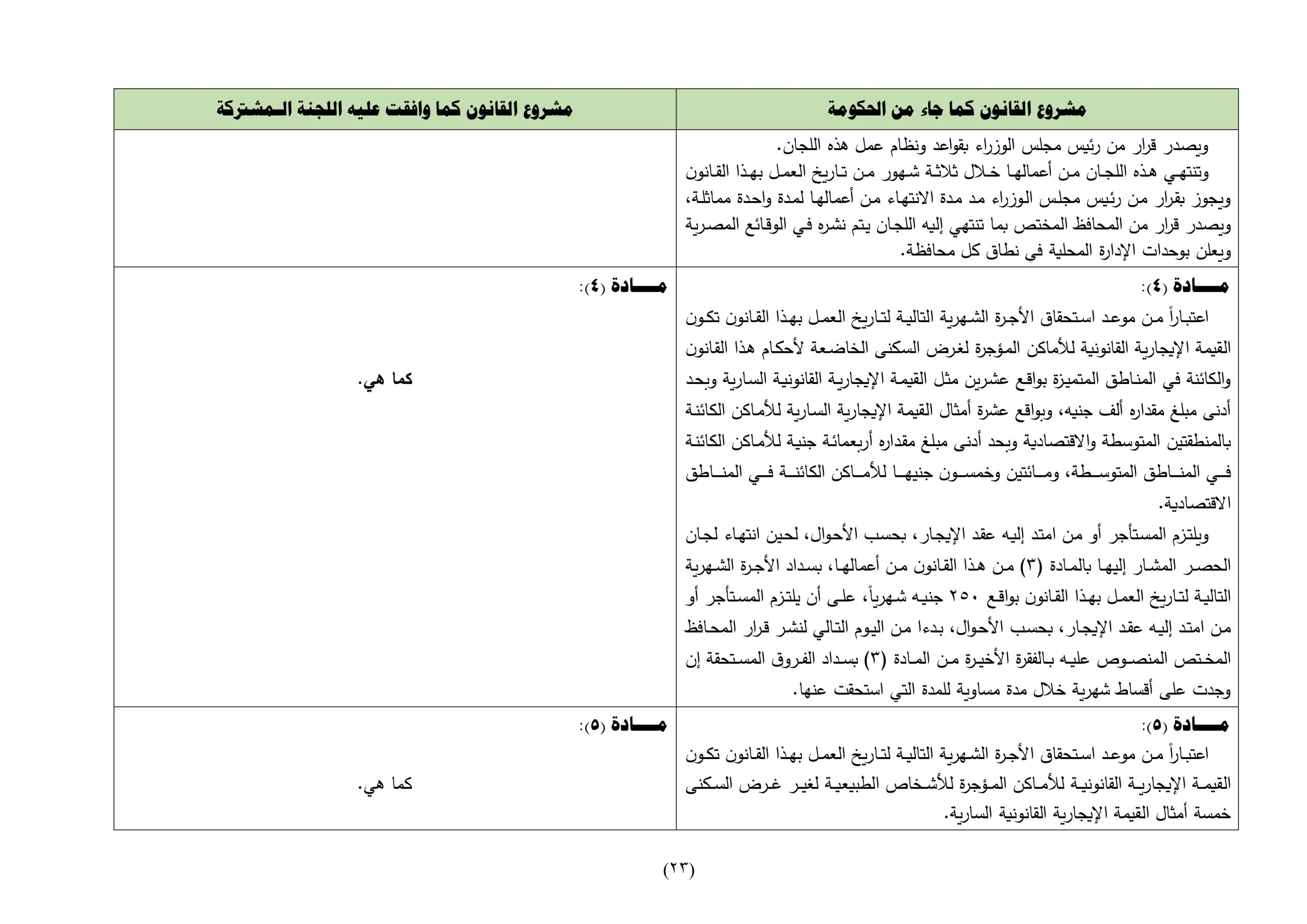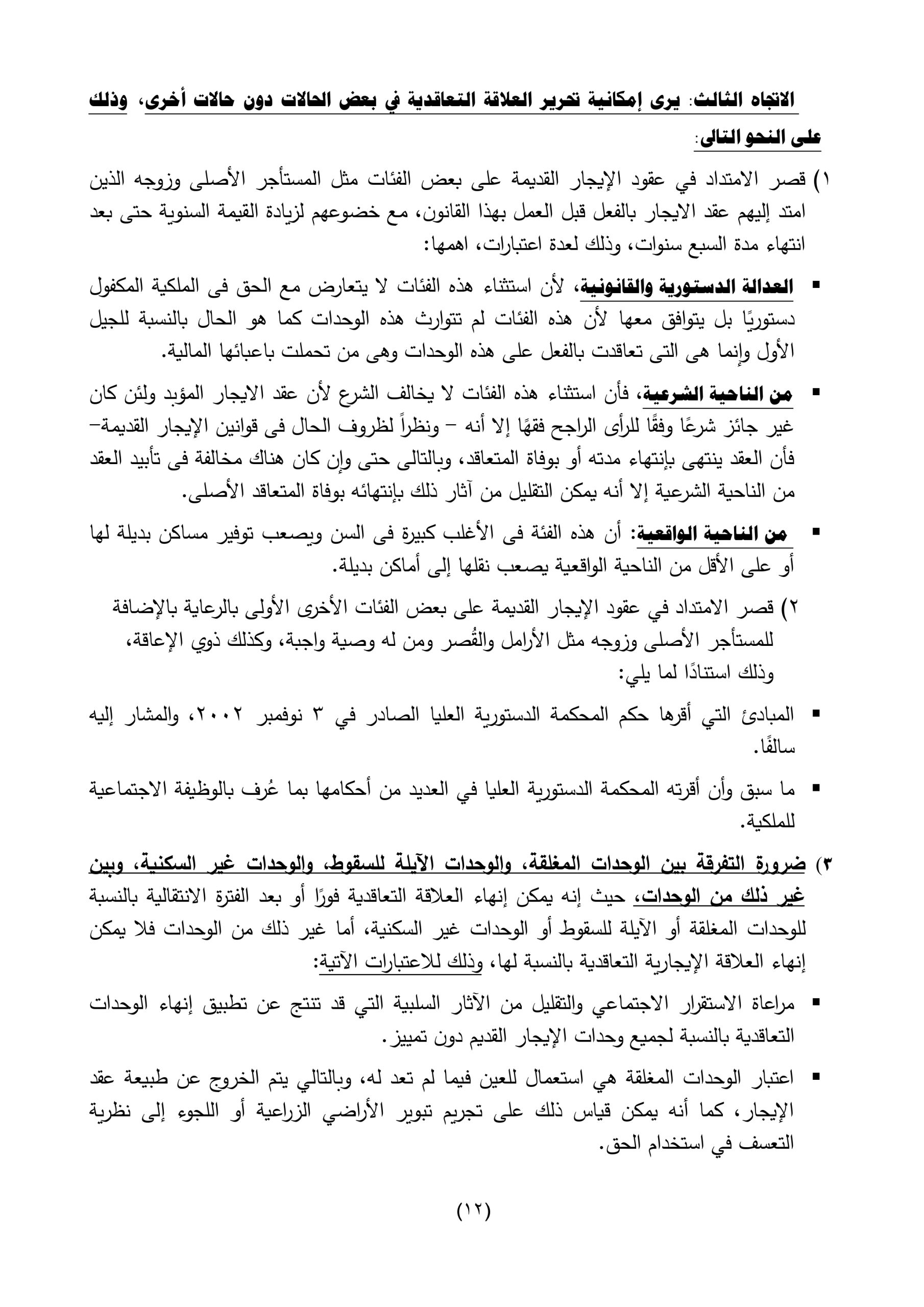 تنتهي عقود إيجار الأماكن السكنية بعد سبع سنوات من تاريخ بدء العمل بهذا القانون، وعقود الأماكن المؤجرة لغير أغراض السكن تنتهي بعد خمس سنوات، ما لم يتفق الطرفان على إنهاء العقد قبل ذلك.