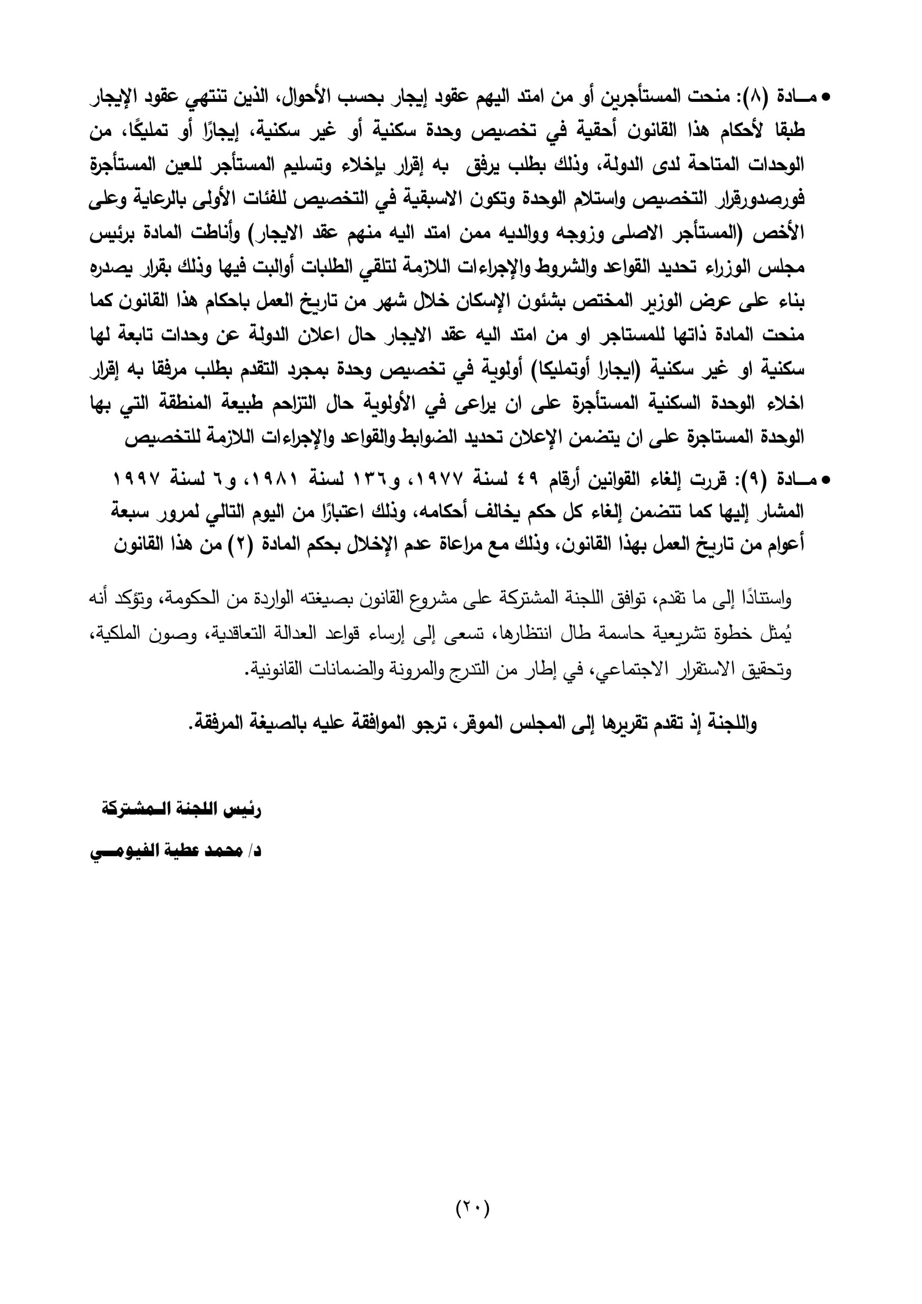تلغى القوانين رقم 49 لسنة 1977، و136 لسنة 1981، و6 لسنة 1997 المتعلقة بالإيجار القديم، بعد سبع سنوات من تطبيق هذا القانون، مع إلغاء أي أحكام تخالفه.
