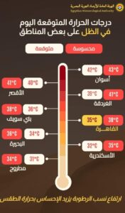 وعن درجات الحرارة المتوقعة اليوم سواء المقاسة في الظل والمحسوسة على بعض المناطق فهي كما يلي :
