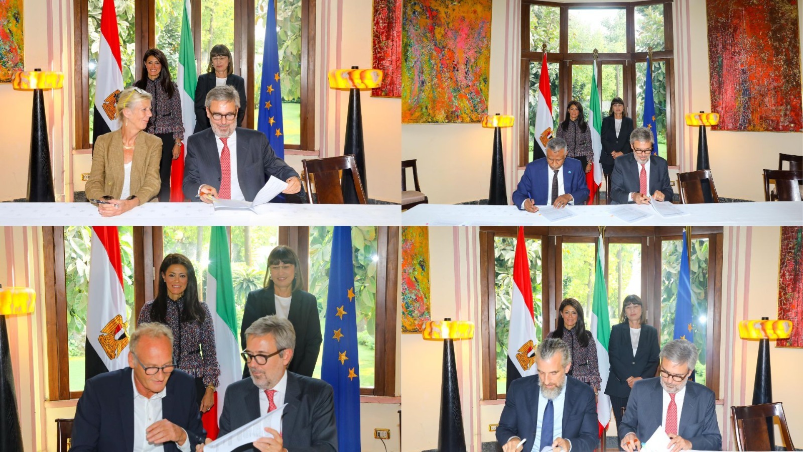 كما وقع الاتفاقيات السفير الإيطالي لدى مصر، ميشيل كوارونى، مع مُمثلى منظمة الأغذية والزراعة “فاو”، ومنظمة اليونيسيف في مصر.