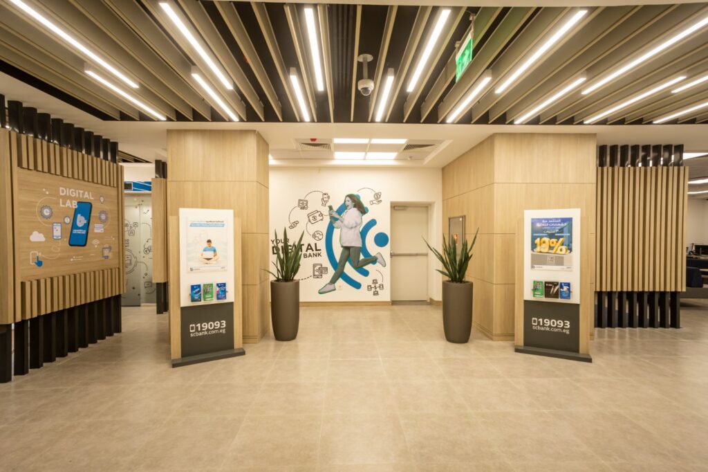 هذا بالإضافة لمنطقة الخدمات الرقمية الذاتية التي تتيح للعملاء التسجيل والحصول على كافة منتجات وخدمات البنك في أسرع وقت ومن ثم يقوم ممثلي خدمة العملاء بالبنك باستكمال نموذج الحصول على المنتجات من خلال نظام إلكتروني تم تطويره من قبل البنك .