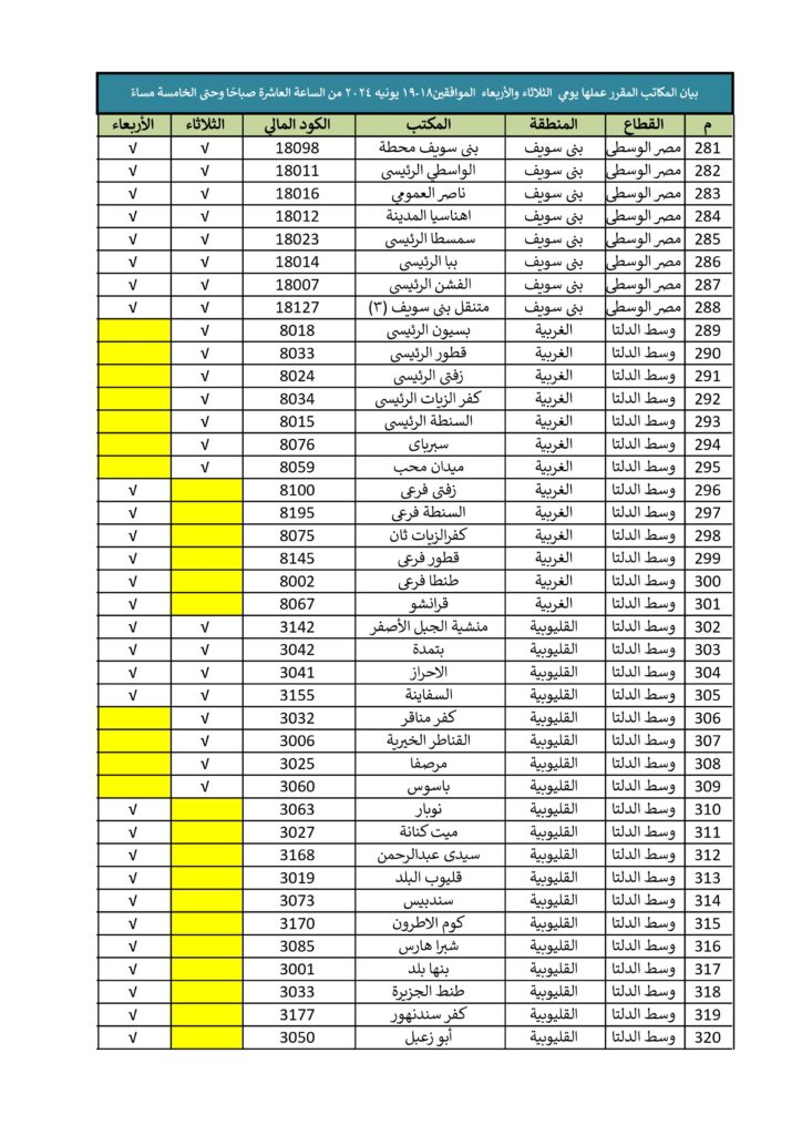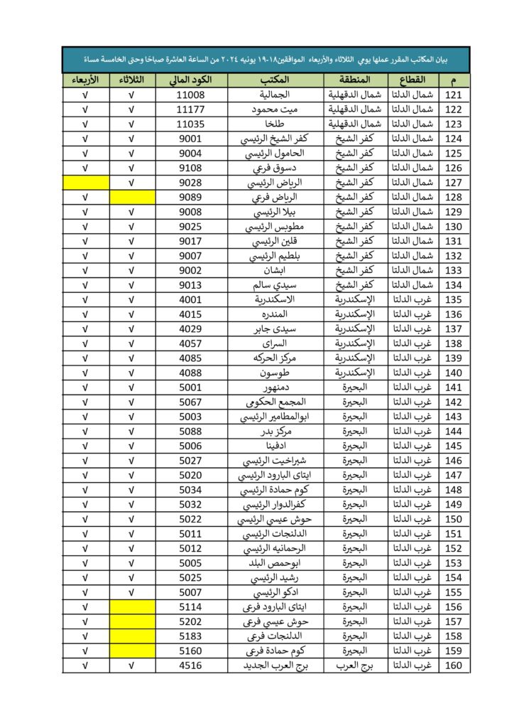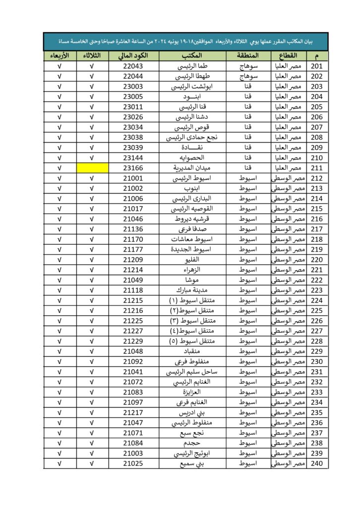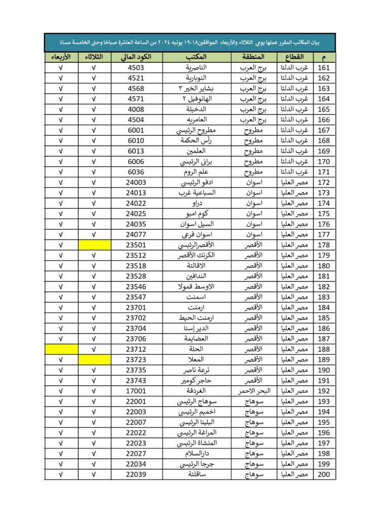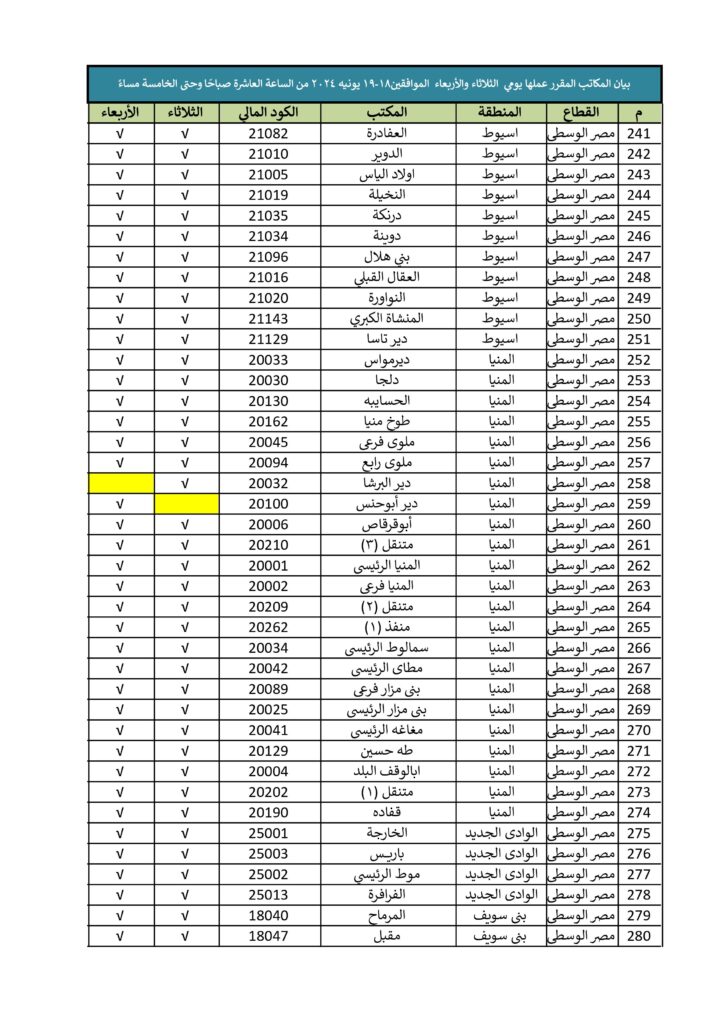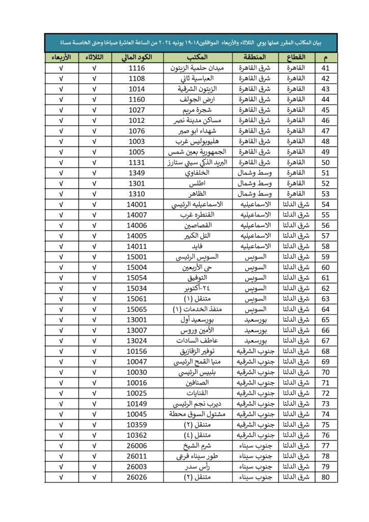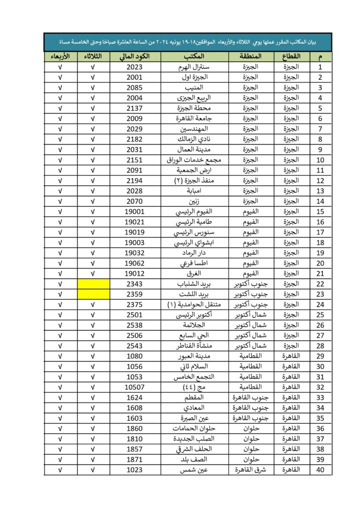 على أن يتم استئناف العمل بجميع مكاتب البريد ومناطق التوزيع والمراكز اللوجستية بكامل طاقتها على مستوى الجمهورية يوم الأحد الموافق 23 يونيو.