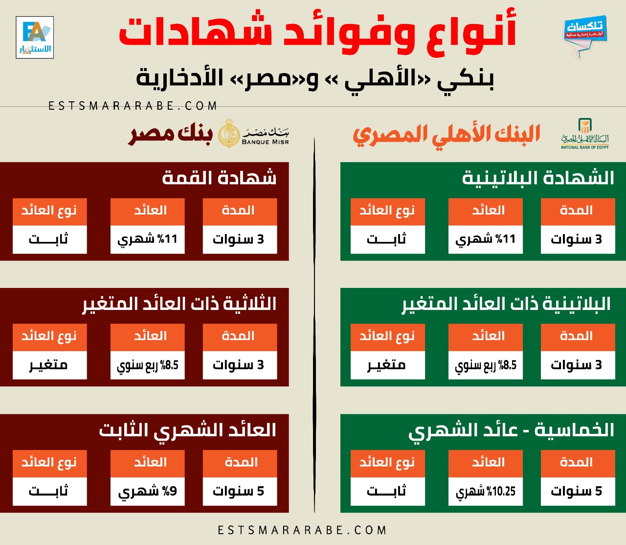 إنفوجراف|| تعرف علي أنواع شهادات بنكي “الأهلي” و”مصر” الأدخارية