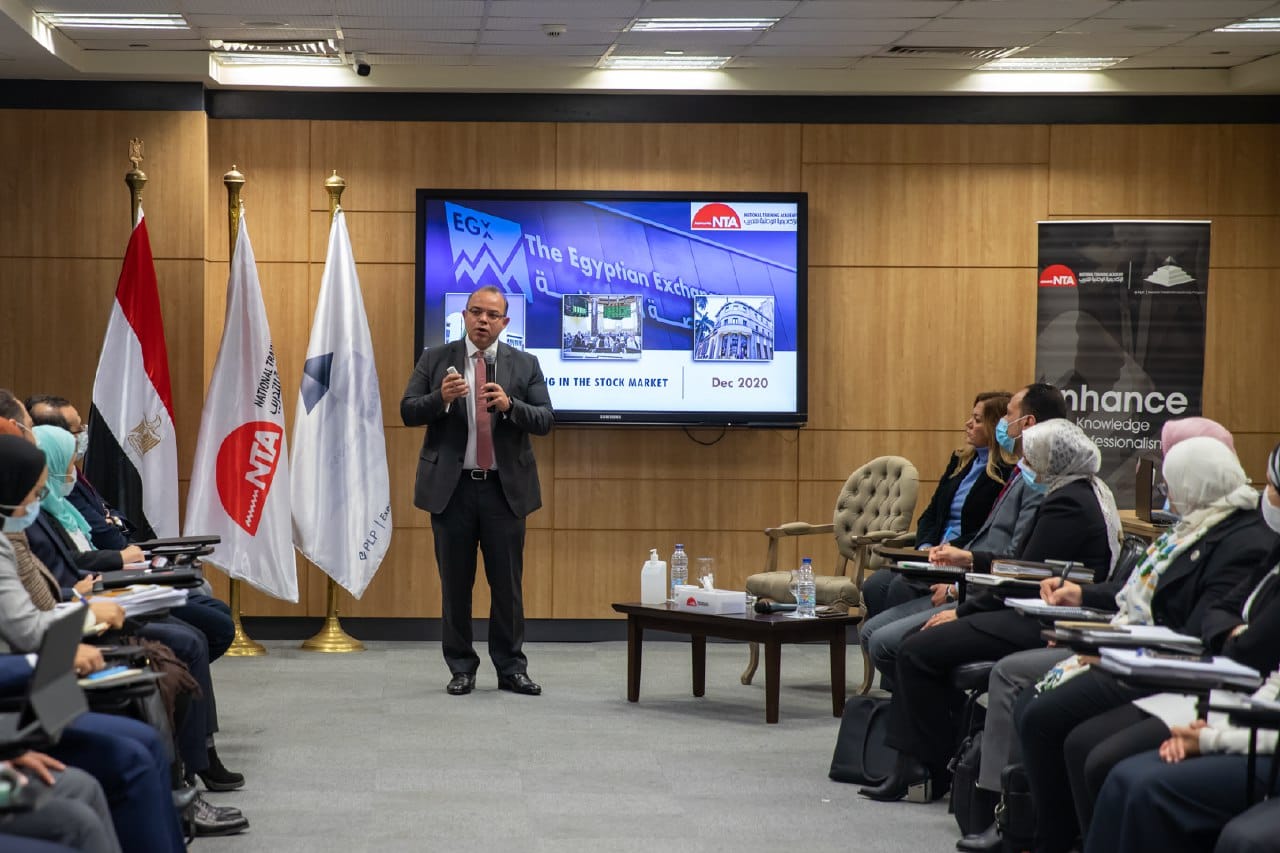 حيث ألقى الدكتور محمد فريد رئيس البورصة المصرية محاضرة في ختام البرنامج التدريبي بحضور الدكتورة رشا راغب المدير التنفيذي للاكاديمية الوطنية للتدريب.