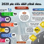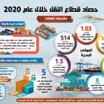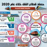 وفي إطار سلسلة متتابعة من التقارير لرصد إنجازات الحكومة في 2020، نشر المركز الإعلامي لمجلس الوزراء، تقريراً تضمن إنفوجرافات تسلط الضوء على حصاد قطاع النقل خلال هذا العام.
