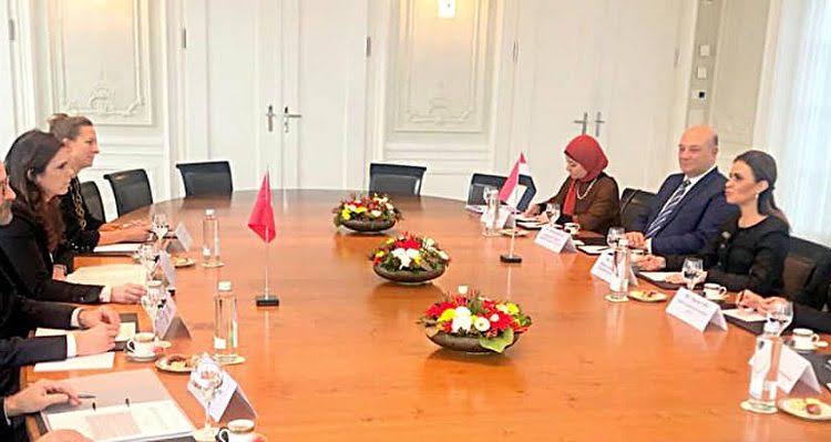 وعقب ذلك، عقدت الوزيرة، اجتماع موسع بمنزل السفير المصرى فى برن، ضم الاجتماع رؤساء مجالس ادارات كل من الوكالة السويسرية للتعاون الدولى، ورئيس مجلس ادار ة المعهد الفيدرالي السويسري للتعليم والتدريب الفني، وممثل سويسرا في منظمة التجارة العالمية والمسئول عن العلاقات الثنائية بسكرتارية الدولة للشئون الاقتصادية، ومسئول قطاع التعاون الدولي بسكرتارية الدولة السويسرية لشئون التعليم والبحث والابتكار، وشركة سويس رى، المتخصصة في تقديم الحلول التأمينية للعديد من شركات القطاعين العام والخاص.