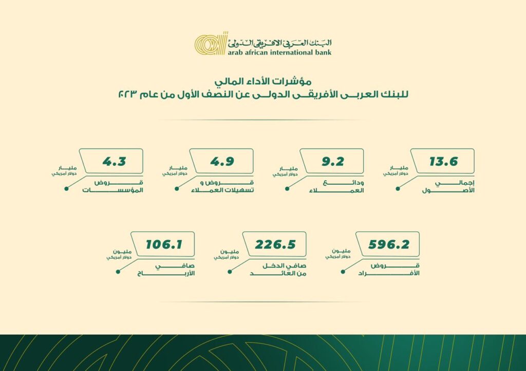 كشف البنك العربي الإفريقي الدولي عن أدائه المالي في النصف الأول من العام 2023 والذي حقق خلاله صافي دخل من العائد بقيمة 226.5 مليون دولار أمريكي.