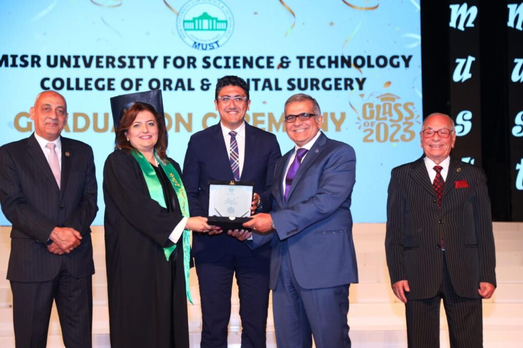وأكد د. أشرف حيدر أن كلية طب الأسنان بجامعة مصر للعلوم والتكنولوجيا واحدة من أهم الكليات، موجها حديثه للخريجين قائلا :”أمامكم مستقبل مشرق وكلية طب الاسنان تتميز بتقديم الشركات مع الجامعات الأجنبية مثل جامعة جنوا والتعاون في مجال طب الاسنان في مجال حراجة الليزر”، موجها الشكر والتحية لأعضاء هيئة التدريس الذين كانوا بمثابة أولياء أمور لجميع الطلاب خلال فترة دراستهم، مقدما التهنئة لأولياء الأمور، وأوضح أن كلية طب وجراحة الفم والأسنان هي كلية خاصة رائدة في التعليم المستمر، وتلتزم الكلية بتخريج طبيب أسنان متميز علمیاً ومھنیاً یُلبي متُطلبات سوق العمل من خلال تحفیز مُنظومة بحثیة علمیة ومھنیة وخدمة علاجیة متطورة تُلبي متُطلبات المجُتمع فى إطار قیم أخلاقیة، ولفت د. حيدر إلى أن مرحلة التخرج ليست نهاية المشور ولكن نهاية مرحلة منه والمشوار طويل جدا، موضحا أن كلية طب الأسنان جامعة مصر للعلوم والتكنولوجيا، تتميز بوجود دبلومات علمية متميزة من جراحة الليزر.