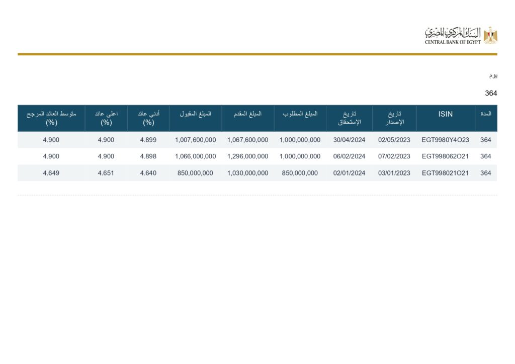 جاء ذلك وفقًا لما أعلنه الموقع الرسمي للبنك المركزي المصري والذي سيطرح نيابة عن وزارة المالية.