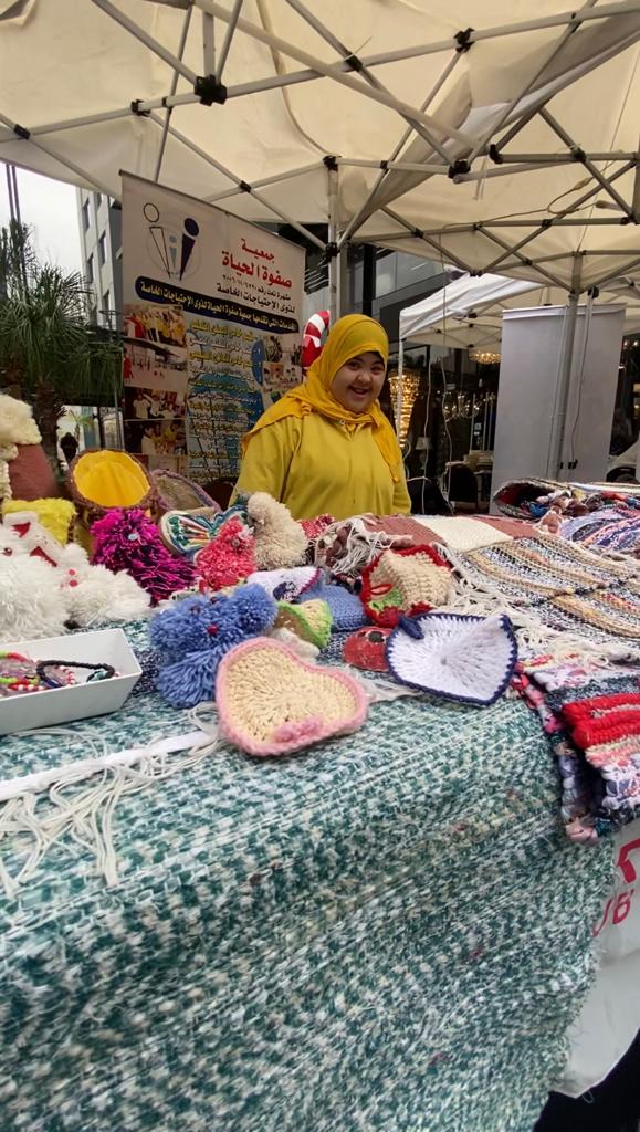 حيث عرض البنك منتجات مصرية الصنع لمؤسسات ترعى ذوي الهمم، وهي منتجات من حرف يدوية منها: الخزف والكليم والهاند كرافت والمنسوجات المطبوعة.