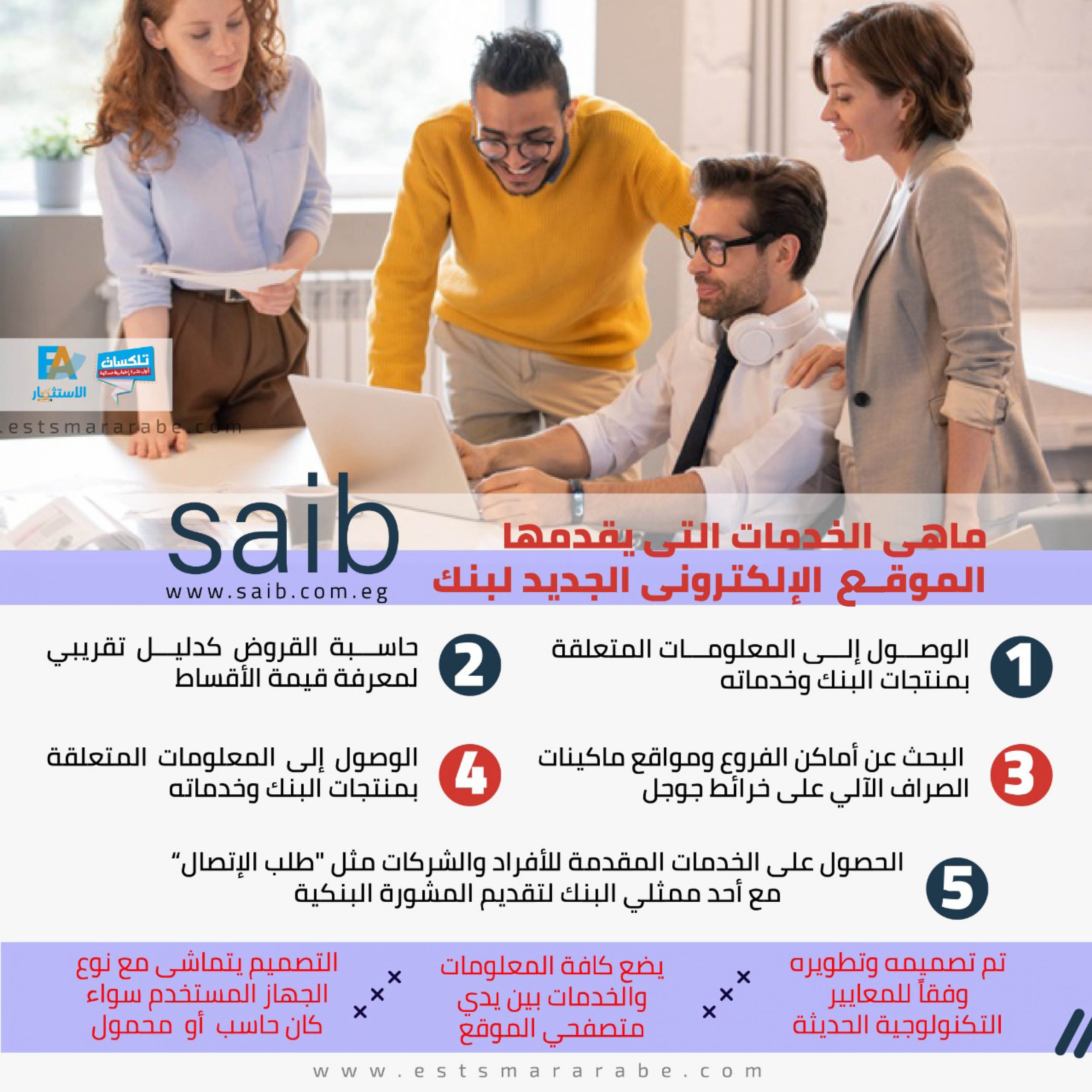 ⇐ إنفوجرافيك |||  تعرف علي الخدمات التي يقدمها الموقع الالكتروني الجديد لبنك saib