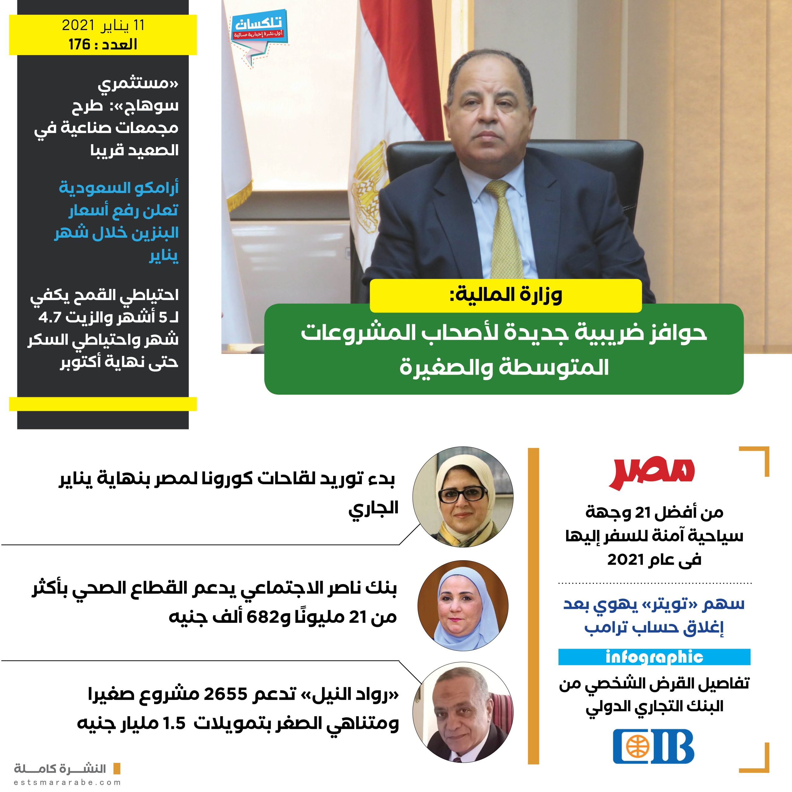 تلكسات نشرة أخبار الأثنين الموافق 11 يناير 2021